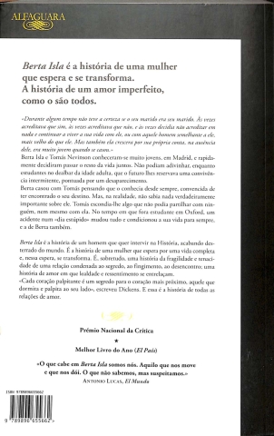 «Javier Marías (1951-2022), nasceu em Madrid. Foi um dos mais destacados escritores espanhóis dos últimos cinquenta anos. A sua obra encontra-se publicada em 46 idiomas e 59 países, com cerca de dez milhões de exemplares vendidos em todo o mundo. Escreveu dezasseis romances, vários livros de contos e de ensaio, a maioria dos quais publicados em Portugal pela Alfaguara: "Tomás Nevinson", "Berta Isla" (Prémio da Crítica), "Assim começa o mal", "Os enamoramentos" (Prémio Giuseppe Tomasi di Lampedusa; Prémio Qué Leer), "Coração tão branco" (Prémio da Crítica; Prix l’Oeil et la Letre; IMPAC Dublin Literary Award), "Amanhã na batalha pensa em mim" (Prémio Fastenrath; Prémio Rómulo Gallegos; Prix Fémina Étranger), "Todas as almas", a trilogia "O teu rosto amanhã", e o volume de contos "Não mais amores". Pelo conjunto da sua obra, recebeu vários prémios e distinções: Prémio Nelly Sachs (Dortmund, 1997); Prémio Comunidad de Madrid (1998); Prémio Grinzane Cavour (Turim, 2000); Prémio Alberto Moravia (Roma, 2000); Prémio Alessio (Turim, 2008), Prémio José Donoso (Chile, 2008); The America Award (2010) Prémio Nonino (Udine, 2011); Prémio Literário Europeu (2011); Prémio Formentor (2013); Prémio Boattari Lattes Grinzane (2015); Premio Liber (2017). Entre as traduções de sua autoria, destaca-se "Tristram Shandy" (Prémio Nacional de Tradução em Espanha, 1979). Foi professor na Universidade de Oxford e na Universidade Complutense de Madrid. Foi, até à sua morte, membro da Real Academia Espanhola e em 2021 foi eleito membro internacional da Royal Society of Literature, a organização de beneficência do Reino Unido para a promoção da literatura. Morreu em setembro de 2022, dias antes de completar setenta e um anos, deixando como legado aos seus leitores uma obra extraordinária, que perdurará no tempo.»