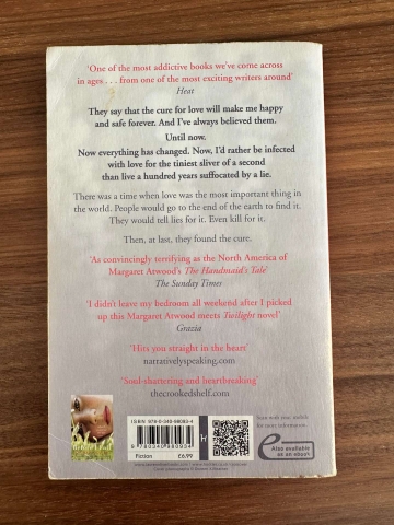 In an alternate United States, love has been declared a dangerous disease, and the government forces everyone who reaches eighteen to have a procedure called the Cure. Living with her aunt, uncle, and cousins in Portland, Maine, Lena Haloway is very much looking forward to being cured and living a safe, predictable life. She watched love destroy her mother and isn't about to make the same mistake.