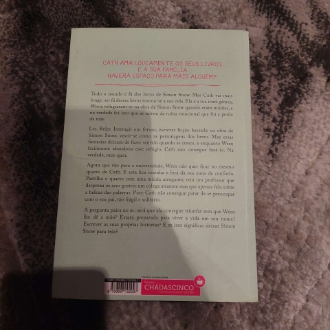 Cath ama os seus livros e a sua família. Haverá espaço para mais alguém? Todo o mundo é fã dos livros de Simon Snow. Mas Cath vai mais longe: ser fã desses livros tornou-se a sua vida. Ela e a sua irmã gémea, Wren, refugiaram-se na obra de Simon Snow quando eram miúdas, e na verdade foi isso que as salvou da ruína emocional que foi a perda da mãe. Ler. Reler. Interagir em fóruns, escrever ficção baseada na obra de Simon Snow, vestir-se como as personagens dos livros. Mas essas fantasias deixam de fazer sentido quando se cresce, e enquanto Wren facilmente abandona esse refúgio, Cath não consegue fazê-lo. Na verdade, nem quer. Agora que vão para a universidade, Wren não quer ficar no mesmo quarto de Cath. E esta fica sozinha e fora da sua zona de conforto. Partilha o quarto com uma miúda arrogante; tem um professor que despreza os seus gostos; um colega atraente mas que apenas fala sobre a beleza das palavras... e, ainda por cima, Cath não consegue parar de se preocupar com o seu pai, tão querido, frágil e solitário. A pergunta paira no ar: será que ela consegue triunfar sem que Wren lhe dê a mão? Estará preparada para viver a vida em seu nome? Escrever as suas próprias histórias? E se isso significar deixar Simon Snow para trás?