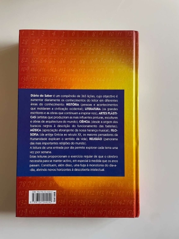 Diário do Saber é um compêndio de 365 lições, cujo objectivo é aumentar diariamente os conhecimentos do leitor em diferentes áreas do conhecimento: HISTÓRIA (pessoas e acontecimentos que moldaram a civilização ocidental); LITERATURA (os grandes escritores e as obras que continuam a inspirar-nos); ARTES PLÁSTICAS (artistas que produziram as mais influentes pinturas, esculturas e obras de arquitectura do mundo); CIÊNCIA (desde a origem dos buracos negros à descrição do funcionamento das baterias); MÚSICA (apreciação abrangente da nossa herança musical); FILOSOFIA (da antiga Grécia ao século XX, os maiores pensadores da Humanidade explicam o sentido da vida); RELIGIÃO (panorama das mais importantes religiões do mundo).
