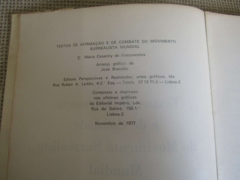 VOLUME DE GRANDE IMPORTÂNCIA PARA A HISTÓRIA DO MOVIMENTO SURREALISTA NAS SUAS MAIS DIVERSAS MANIFESTAÇÕES,COM RETRATOS,FACSIMILES DE CAPAS DE LIVROS,REVISTAS E MANIFESTOS,REPRODUÇÕES DE PINTURAS,DESENHOS,ETC " O LEITOR ENCONTRARÁ NESTE LIVRO MUITAS DAS PRINCIPAIS LINHAS DE FOGO SURREALISTA ATEADAS EM FRANÇA,PERU,ROMÉNIA,INGLATERRA,TENERIFE,MÉXICO,HOLANDA,BRASIL,ARGENTINA,ESTADOS UNIDOS E OUTROS PAÍSES.