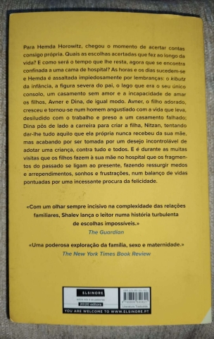 As horas e os dias sucedem-se e Hemda é assaltada impiedosamente por lembranças: o kibutz da infância, a figura severa do pai, o lago que era o seu único consolo, um casamento sem amor e a incapacidade de amar os filhos, Avner e Dina, de igual modo.