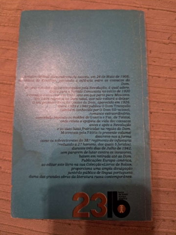 O presente romance, “Morreram pela Pátria” é uma das grandes obras da literatura russa do século XX e descreve a forma como os sobreviventes do 38º regimento de infantaria russo (reduzido a 27 homens, dos quais 5 feridos), durante três dias de Julho de 1942, sem pararem de lutar contra o invasor nazi, batem em retirada até ao Dom. Mikail Cholokov foi um dos maiores escritores russos do século XX, contemporâneo de outros grandes autores russos, como Tolstoi, Dostoievsky e Soljenitsin.