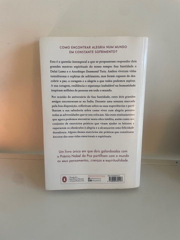 Durante uma semana marcada pela boa disposição, refletiram sobre as suas experiências e partilharam a sua sabedoria sobre como viver com alegria perante todas as adversidades que se nos colocam. São estes ensinamentos que agora podemos encontrar nesta obra inédita, assim como um conjunto de exercícios práticos que visam ajudar os leitores a superar os obstáculos à alegria e a alcançar uma felicidade duradoura. Alguns desses exercícios são práticas que o Dalai Lama e o Arcebispo Tutu usam diariamente e que constituem âncoras das suas vidas emocionais e espirituais.