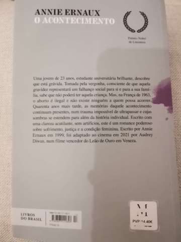 Uma jovem de 23 anos, estudante universitária brilhante, descobre que está grávida. Tomada pela vergonha, consciente de que aquela gravidez representará um falhanço social para si e para a sua família, sabe que não poderá ter aquela criança. Mas, na França de 1963, o aborto é ilegal e não existe ninguém a quem possa recorrer. Quarenta anos mais tarde, as memórias daquele acontecimento continuam presentes, num trauma impossível de ultrapassar e cujas sombras se estendem para além da história individual. Escrito com uma clareza acutilante, sem artifícios, este é um romance poderoso sobre sofrimento, justiça e a condição feminina. Escrito por Annie Ernaux em 1999, foi adaptado ao cinema em 2021 por Audrey Diwan, num filme vencedor do Leão de Ouro em Veneza.