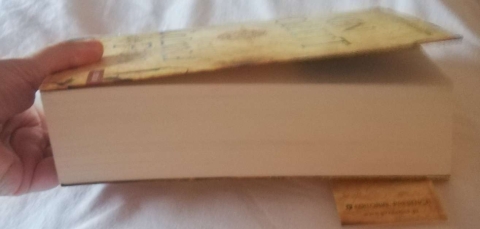 Pequeno rasgo em baixo na capa, protegido com fita-cola.