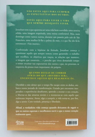 Jonathan tem o que aparenta ser uma vida bem-sucedida: uma carreira sólida, uma imagem respeitada, uma rotina confortável. Mas, num domingo como tantos outros, durante um passeio pelos cais de São Francisco, uma mulher lê-lhe a palma da mão, e o que lhe diz fá-lo estremecer: «Vais morrer.» Confrontado com a hipótese da finitude, Jonathan começa a questionar aquilo que sempre tomou como garantido: o trabalho que escolheu, os objetivos que traçou, as relações que manteve, a imagem que construiu… e percebe que viveu demasiado tempo a tentar encaixar nas expectativas dos outros e que, no processo, se esqueceu da pessoa mais importante: ele próprio.