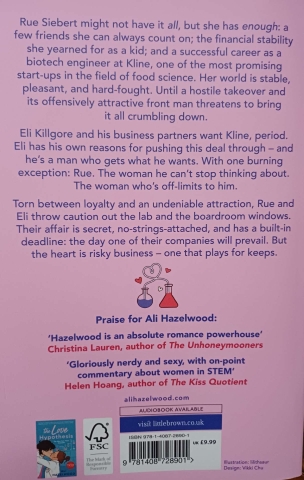 Rue Siebert might not have it all, but she has enough: a few friends she can always count on, the financial stability she yearned for as a kid, and a successful career as a biotech engineer at Kline, one of the most promising start-ups in the field of food science. Her world is stable, pleasant, and hard-fought. Until a hostile takeover and its offensively attractive front man threatens to bring it all crumbling down.