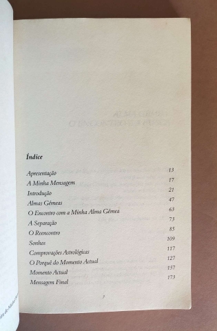 «O encontro entre Almas Gémeas é irreversível. Nada nem ninguém pode impedir a comunicação entre espíritos que se amam, pois a Providência Divina encarrega-se disso. Deus criou-nos juntos. A história de Eva ter sido formada a partir da costela de Adão é uma tentativa de ilustrar essa origem mística. Portanto, ninguém pode separar-nos desse amor de Deus com a nossa Alma Gémea. A dificuldade em não conseguir estar com a Alma Gémea não deve ser encarada como sofrimento, mas como Dádiva Divina. Os entraves são testes e, ao mesmo tempo, reforços.