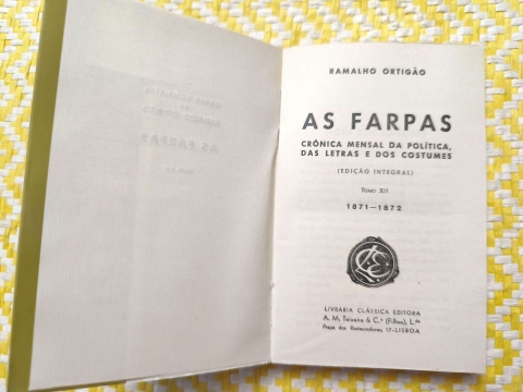 As Farpas foi uma publicação mensal iniciada em 1871, fundada por Ramalho Ortigão e Eça de Queirós — embora Eça tenha abandonado a colaboração ao longo de 1872. Depois os textos foram compilados em volumes organizados tematicamente e cronologicamente por Ortigão.