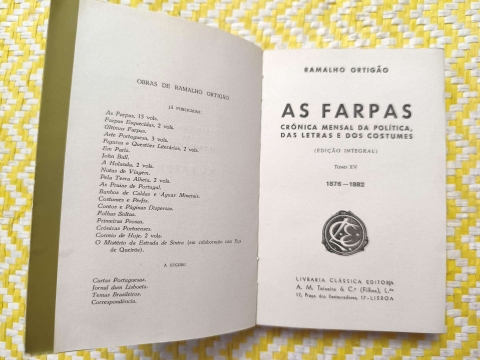 No Tomo XV estão reunidos textos do início da publicação d’As Farpas, que incluem: