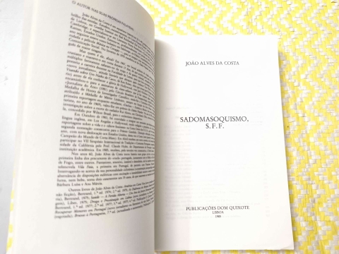«Sadomasoquismo, S. F. F. é o documento implacável de algumas das mais secretas noites de Lisboa, a história verdadeira e escandalosa da iniciação sado-masoquista de duas jovens naturais de uma povoação dos subúrbios da capital».