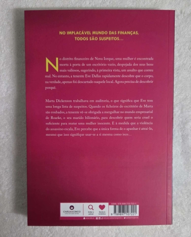 Marta Dickenson trabalhava em auditoria, o que significa que Eve tem uma longa lista de suspeitos. Quando os ficheiros do escritório de Marta são roubados, a tenente vê-se obrigada a mergulhar no mundo empresarial de Roarke, o seu marido bilionário, para descobrir quem seria cruel o suficiente para matar uma mulher inocente. E à medida que a violência do assassino escala, Eve percebe que a única forma de o apanhar é atraí-lo, mesmo que isso signifique usar-se a si mesma como isco…