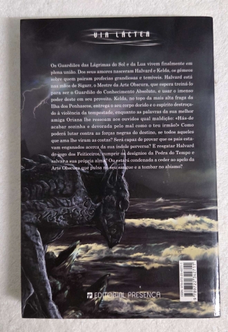 Os Guardiães das Lágrimas do Sol e da Lua vivem finalmente em plena união. Dos seus amores nasceram Halvard e Kelda, os gémeos sobre quem pairam profecias grandiosas e temíveis. Halvard está nas mãos de Sigarr, o Mestre da Arte Obscura, que espera treiná-lo para ser o Guardião do Conhecimento Absoluto, e usar o imenso poder deste em seu proveito. Kelda, luta por cumprir os desígnios da Pedra do Tempo e salvar a sua própria alma, resgatar Halvard e levar a cabo a missão que herdou da sua avó Catelyn. Este é o quinto volume de uma das séries fantásticas mais acarinhadas pelos leitores portugueses, A Saga das Pedras Mágicas.