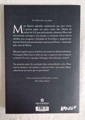 Mare Barrow aprendeu rapidamente que para vencer é preciso pagar um preço muito alto. Depois da traição de Cal, que praticamente a destruiu, Mare está determinada a proteger o seu coração e a continuar a lutar com os rebeldes para assegurar a liberdade de Vermelhos e sanguenovos. A jovem fará de tudo para derrubar o governo de Norta - começando pela coroa de Maven. Mas para a guerra que se avizinha é necessário ter aliados poderosos. Conseguirá Mare lutar ao lado dos que a magoaram para assegurar a vitória? Ou será a rapariga-relâmpago silenciada para sempre?