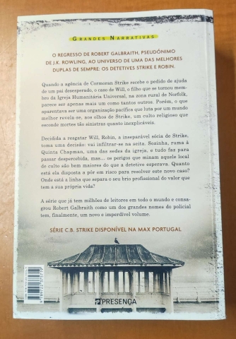 Decidida a resgatar Will, Robin, a inseparável sócia de Strike, toma uma decisão: vai infiltrar-se na seita. Sozinha, ruma à Quinta Chapman, uma das sedes da Igreja, e tudo faz para passar despercebida, mas… os perigos que minam aquele local de culto são bem maiores do que a detetive esperava. Quanto está ela disposta a pôr em risco para resolver este novo caso? Onde está a linha que separa o seu brio profissional do valor que tem a sua própria vida?