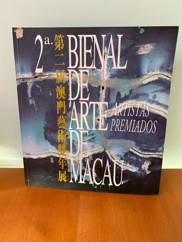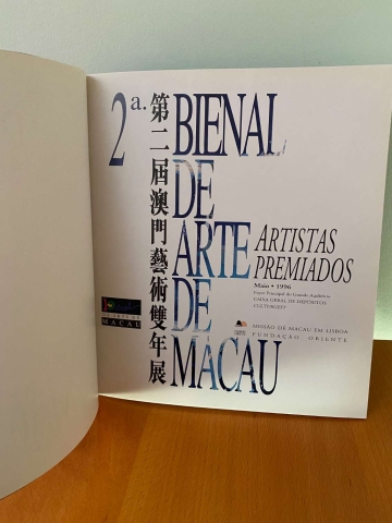Catálogo dos artistas premiados da exposição 2ª Bienal de Arte de Macau, organizada pela Missão de Macau em Portugal e Fundação Oriente