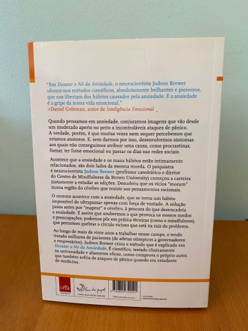 O mesmo acontece com a ansiedade, que se torna um hábito impossível de ultrapassar apenas com força de vontade. A solução passa antes por "mapear" o cérebro, à procura do que desencadeia a ansiedade. Ao longo de mais de vinte anos a trabalhar nesse campo, e tendo tratado milhares de pacientes (de atletas olímpicos a governadores e empresários), Judson Brewer criou o método que é explicado em Desatar o Nó da Ansiedade. É científico, testado clinicamente na universidade e altamente eficaz, como comprova o próprio autor, que também sofria de ataques de pânico quando era estudante de medicina.