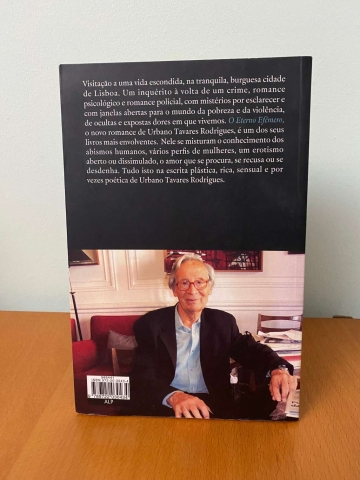 Visitação de uma vida escondida, que existe na tranquila, burguesa cidade de Lisboa, um inquérito à volta de um crime, romance psicológico e romance policial, com mistérios por esclarecer e com janelas abertas para o mundo da pobreza e da violência, de ocultas e expostas dores em que vivemos, O Eterno Efémero é um dos livros mais envolventes de Urbano Tavares Rodrigues, em que se misturam o conhecimento dos abismos humanos, um erotismo aberto ou dissimulado, o amor que se procura, se recusa ou se desdenha. Tudo isto na escrita plástica, rica, sensual e por vezes poética de Urbano Tavares Rodrigues.