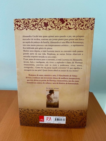 É que, antes de entrar para o convento, a irmã Lucrezia era Alessandra. Jovem, bela e inteligente, ela viveu o esplendor e luxo da Florença renascentista, conviveu com os ricos e poderosos, criou, amou, transgrediu... Como foi ela parar àquele convento? O que significa a tatuagem na sua pele? Quais foram afinal as causas da sua morte?