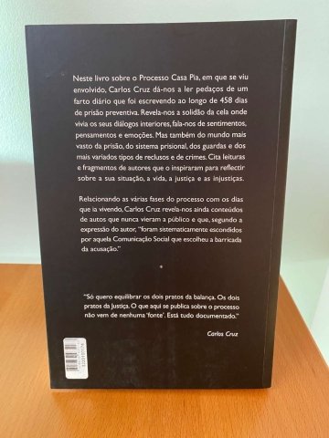 Neste primeiro livro sobre o processo Casa Pia em que se viu envolvido, Carlos Cruz dá-nos a ler pedaços de um farto diário que foi escrevendo ao longo de 458 dias de prisão preventiva. Revela-nos a solidão da cela onde vivia os seus diálogos interiores, fala-nos de sentimentos, pensamentos e emoções. Mas também o mundo mais vasto da prisão, do sistema prisional, dos guardas e dos mais variados tipos de reclusos e de crimes. Cita leituras e fragmentos de autores que o inspiraram para reflectir sobre a sua situação, a vida, a justiça e as injustiças.