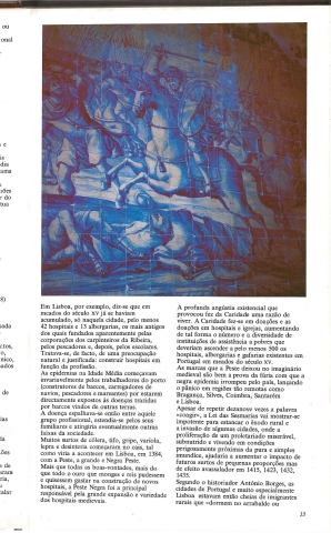 Obra de grande interesse histórico e cultural em que se arrolam os bens artísticos e passado histórico de vários hospitais portugueses, compondo um riquíssimo panorama que abrange os séculos XIII a XIX, e inclui descrições sumárias de vários hospitais monásticos, reais, monumentais, públicos e psiquiátricos. Contém apensa uma pequena lista de doutas personalidades nacionais que cursaram medicina, enveredando por outras carreiras.