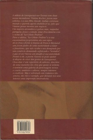 Vianne é uma mãe solteira que chega à pequena aldeia, com a sua filha, e ali abre uma chocolataria. Os capítulos alternados, ora com a voz de Vianne, ora com a do padre Reynaud (ao contrário do filme, no livro é este que quer fechar esta loja das tentações), criam uma grande tensão dramática. " "Todos nós somos divididos interiormente" diz Joanne. " O Padre Reynaud é uma espécie de anorético. Recusa-se a comer e tortura-se a si próprio ficando horas em frente à montra do talho. É repressivo, a sua severidade para com os outros baseia-se no facto de se odiar profundamente."