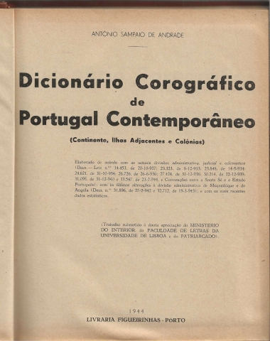 Continente, Ilhas Adjacentes e Colónias elaborado de acôrdo com as actuais divisões administrativa, judicial e eclesiástica; com as últimas alterações à divisão administrativa de Moçambique e de Angola; e com os mais recentes dados estatísticos»