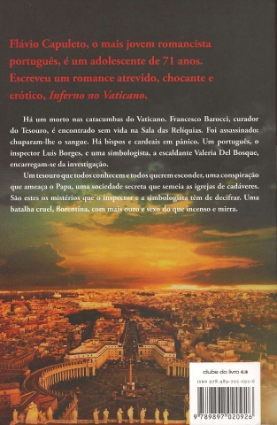 Há um morto nas catacumbas do Vaticano. Francesco Barocci, curador do Tesouro, é encontrado sem vida na Sala das Relíquias. Foi assassinado: chuparam-lhe o sangue. Há bispos e cardeais em pânico. Um português, o inspetor Luís Borges, e uma simbologista, a escaldante Valeria Del Bosque, encarregam-se da investigação.