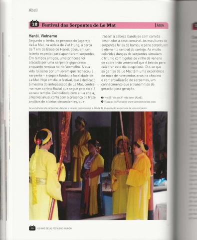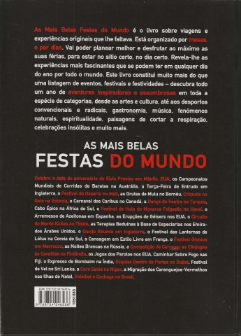 Numa notável recolha das festas do mundo – viajando pelos cinco continentes, ao longo de todos os dias do ano – esta obra permite-lhe entrar no epicentro de uma cultura e nas suas festas mais simbólicas. Organizado segundo a lógica de um calendário, pode facilmente saber que festa acontece em determinado dia e em que lugar do mundo. Pretexto de viagem, as festas são ainda a melhor forma de conhecer a alma de um povo e assim desfrutar de uma intensa experiência.