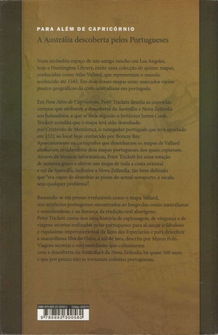 A Austrália descoberta pelos Portugueses. Num recôndito espaço de um antigo rancho em Los Angeles, hoje a Huntington Library, existe uma coleção de quinze mapas, conhecidos como Atlas Vallard, que representam o mundo conhecido até 1545. Em dois desses mapas estão marcados vários pontos geográficos da costa australiana em português. Em Para Além de Capricórnio, Peter Trickett desafia as convictas certezas que atribuem a descoberta da Austrália e Nova Zelândia aos holandeses, a que se teria seguido o britânico James Cook.