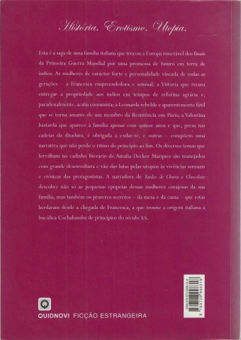 Das lutas pelas utopias às vivências sensuais e eróticas das protagonistas, esta é a saga de uma família de mulheres ao longo de todo o século XX, entre a Europa das guerras e a Bolívia das revoluções. As histórias das suas pequenas epopeias e dos seus prazeres secretos compõem um romance fascinante que não perde o ritmo da primeira à última página.