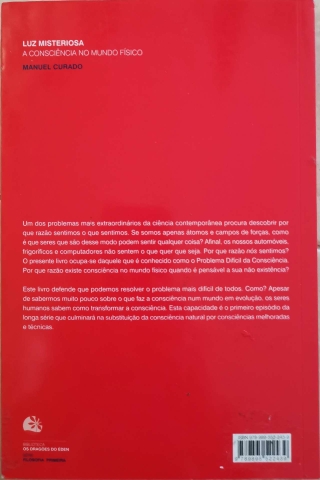Um dos problemas mais extraordinários da ciência contemporânea procura descobrir por que razão sentimos o que sentimos. Se somos apenas átomos e campos de forças, como é que seres que são desse modo podem sentir qualquer coisa? Afinal, os nossos automóveis, frigoríficos e computadores não sentem o que quer que seja. Por que razão nós sentimos? O presente livro ocupa-se daquele que é conhecido como o Problema Difícil da Consciência. Por que razão existe consciência no mundo físico quando é pensável a sua não existência? Este livro defende que podemos resolver o problema mais difícil de todos. Como? Apesar de sabermos muito pouco sobre o que faz a consciência num mundo em evolução, os seres humanos sabem como transformar a consciência. Esta capacidade é o primeiro episódio da longa série que culminará na substituição da consciência natural por consciências melhoradas e técnicas.
