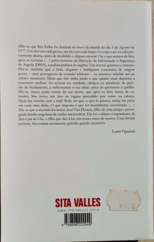 «Diz-se que Sita Valles foi fuzilada às cinco da manhã do dia 1 de Agosto de 1977. Um tiro em cada perna, um tiro em cada braço. O corpo caiu na vala previamente aberta, antes de desferido o disparo mortal. Ou o que restava de Sita, após as torturas e a orgia de violações pelos homens da Direcção de Informação e Segurança de Angola (DISA), a polícia política do regime. Um tractor aplainou o terreno. Diz-se também que a bela, elegante e inteligente comunista de origem goesa uma portuguesa de coração africano se manteve rebelde até ao último momento. Dizia que não tinha medo e que quanto mais depressa a matassem melhor. Ao recusar ser vendada, obrigou os atiradores do pelotão de fuzilamento, a enfrentarem o seu olhar, antes de apertarem o gatilho.»