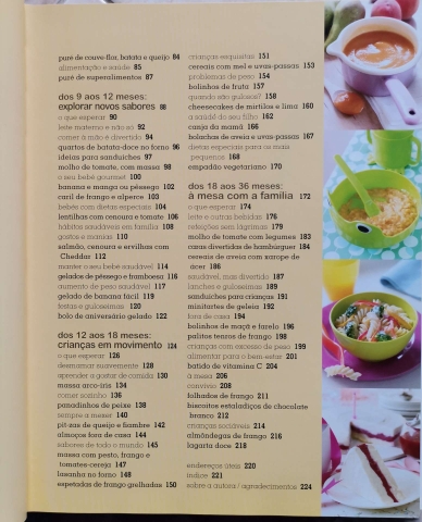 Mais de 300 perguntas e respostas sobre a alimentação das crianças até aos 36 meses. A autora, especialista em alimentação infantil, esclarece as suas dúvidas e dá sugestões para ajudar a resolver situações como o desmame e a introdução de novos alimentos. Inclui 50 receitas que asseguram que a criança ingere todos os nutrientes necessários.