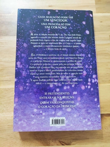 Este é o volume final da saga «A Seleção», que apaixonou milhares de leitores por todo o mundo! Em A Herdeira, o universo de A Seleção entrou numa nova era. Vinte anos se passaram desde que America Singer e o príncipe Maxon se apaixonaram, e a filha do casal é a primeira a passar pela sua própria seleção. Eadlyn não acreditava que encontraria um companheiro entre os trinta e cinco pretendentes do concurso, muito menos o amor verdadeiro. Mas às vezes o coração tem uma maneira estranha de surpreender-nos... E agora Eadlyn precisa fazer uma escolha muito mais difícil - e importante - do que esperava.