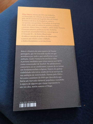 Esta é a história de uma espécie de Fausto português, que foi trocando aquilo em que acreditava por tudo o que satisfizesse a sua ambição. André Ventura foi um fura-vidas. A persona mediática que criou nasceu na CMTV como comentador de futebol. Na adolescência convertera-se ao catolicismo, a ponto de se tornar um fundamentalista religioso. Depois de ganhar visibilidade televisiva soube pô-la ao serviço da sua ambição de notoriedade.