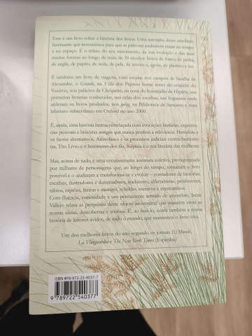 Este é um livro sobre a história dos livros. Uma narrativa desse artefacto fascinante que inventámos para que as palavras pudessem viajar no tempo e no espaço. É o relato do seu nascimento, da sua evolução e das suas muitas formas ao longo de mais de 30 séculos: livros de fumo, de pedra, de argila, de papiro, de seda, de pele, de árvore, de plástico e, agora, de plástico e luz.