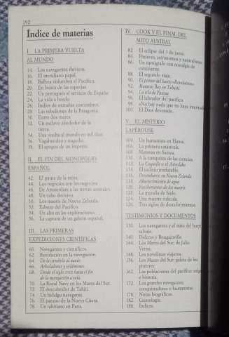 Aborda temas históricos relacionados a explorações marítimas e navegação, com foco particular no Oceano Pacífico e em expedições de descoberta. De acordo com o catálogo da Pontificia Universidad Católica de Valparaíso.