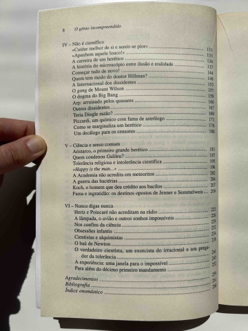 Se te queres tornar um verdadeiro cientista, pensa, pelo menos, meia hora por dia de modo oposto ao dos teus colegas, dizia Einstein. Muitas descobertas requerem, antes de mais, ausência de preconceitos, criatividade e abertura mental, qualidades que pertencem não só aos cientistas mais originais e inconformistas, mas também aos amadores, aos "outsiders semicompetentes", que têm a coragem de ir contra a corrente e de pensar aquilo que os outros acham impossível. Neste livro, Di Trocchio apresenta uma série de "erros de juízo" da ciência - frequentemente corrigidos só muito tempo depois - que colocam algumas interrogações fundamentais acerca do progresso científico: como se passa de uma velha teoria para uma nova? Como nasce uma grande invenção? E, sobretudo, porque é que foi tão difícil compreender e aceitar revoluções conceptuais, como a teoria de Copérnico, ou inovações tecnológicas, como a rádio, a lâmpada e o avião? Ao contrário de inúmeros historiadores da ciência, que enfrentam este tipo de questões de modo abstracto, "O Génio Incompreendido" coloca-se ao lado daqueles investigadores que tiveram de lutar contra as resistências existentes até mesmo no seio da comunidade científica e tenta fazer luz, não só sobre os problemas sociais e económicos, mas também psicológicos e metodológicos, que impedem o progresso humano.