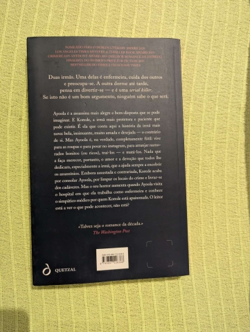 "Neste breve, sinistro e cómico thriller, Korede — a irmã mais velha —, conta a história da sua irmã mais nova, Ayoola. Ou seja, a belíssima, super insinuante, super amada e desejada Ayoola. Ayoola é completamente fútil. Vive para dormir até tarde, para se vestir (e despir) e se maquilhar, para saltitar de festa em festa, arranjar namorados bonitos e ricos, traí-los — e matá-los. Nada que mereça, portanto, o amor e a devoção que todos lhe dedicam, em especial a irmã, que a ajuda sempre no encobrimento dos crimes. Embora assustada e contrariada, Korede acaba por apoiar e consolar Ayoola — e por limpar os locais do crime. Mas o seu horror aumenta quando Ayoola visita o hospital em que ela trabalha como enfermeira e conhece o simpático médico por quem Korede está apaixonada. O leitor está a ver o que pode acontecer, não está?"