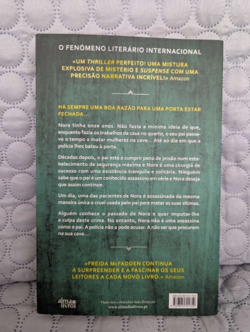 "Nora tinha onze anos. Não fazia a mínima ideia de que, enquanto fazia os trabalhos de casa no quarto, o seu pai passava o tempo a matar mulheres na cave... Até ao dia em que a polícia lhes bateu à porta.