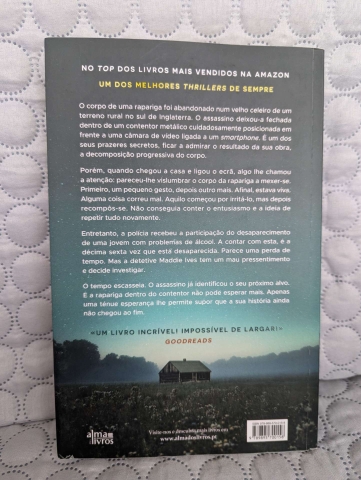 "O corpo de uma rapariga foi abandonado num velho celeiro de um terreno rural no sul de Inglaterra. O assassino deixou-a fechada dentro de um contentor metálico cuidadosamente posicionada em frente a uma câmara de vídeo ligada a um smartphone. É um dos seus prazeres secretos, ficar a admirar o resultado da sua obra, a decomposição progressiva do corpo.