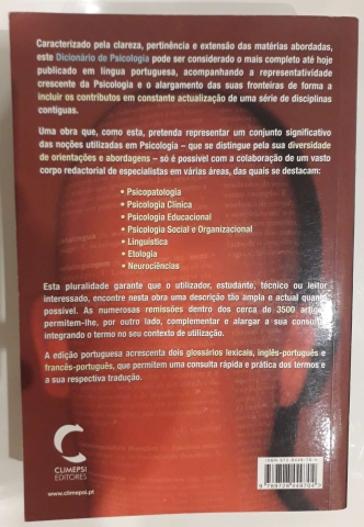 Caracterizado pela clareza, pertinência e extensão das matérias abordadas, este Dicionário de Psicologia pode ser considerado o mais completo até hoje publicado em língua portuguesa, acompanhando a representatividade crescente da Psicologia e o alargamento das suas fronteiras de forma a incluir os contributos em constante actualização de uma série de disciplinas contíguas.