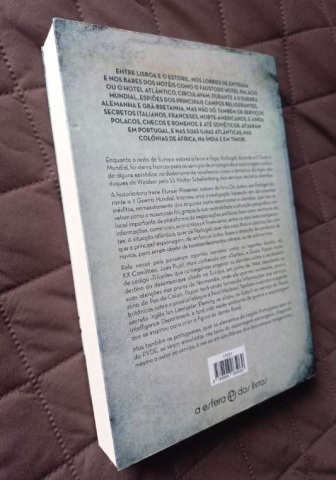 Entre Lisboa e o Estoril, nos lobbies de entrada e nos bares dos hotéis como o faustoso Hotel Palácio ou o Hotel Atlântico, circulavam, durante a II Guerra Mundial, espiões dos principais campos beligerantes, Alemanha e Grã-Bretanha, mas não só. Também os serviços secretos italianos, franceses, norte-americanos, e ainda polacos, checos e romenos, e até soviéticos, atuaram em Portugal, e nas suas Ilhas atlânticas e nas suas colónias de África, na Índia e em Timor. Enquanto o resto da Europa estava a ferro e fogo, Portugal, durante a II Guerra Mundial, foi «terra franca» para os serviços de propaganda e espionagem e palco de alguns episódios verdadeiramente novelescos como a tentativa de rapto dos duques de Windsor pelo SS Walter Schellenberg, dos serviços secretos alemães. A historiadora Irene Flunser Pimentel, autora do livro Os Judeus em Portugal durante a II Guerra Mundial, traz-nos uma investigação única, baseada em documentos inéditos até agora mantidos em segredo, que nos revelam como o nosso país foi, graças à sua neutralidade e situação geográfica, um local importante de plataforma de negociações políticas, bem como de trocas de informações, comerciais, económicas e financeiras, entre os dois lados beligerantes. A situação atlântica, quer de Portugal, quer das suas ilhas e colónias, fez com que a principal espionagem, de ambos os lados, fosse a deteção de comboios de navios, para serem objeto de bombardeamentos aéreos ou de submarinos. Pelo nosso país passaram agentes secretos como os agentes duplos, do XX Comiittee, Juan Pujol, mais conhecido por «Garbo» e Dusko Popov, nome de código «Tricycle», que conseguiriam enganar os alemães sobre o verdadeiro destino do desembarque aliado na Europa, em junho de 1944, desviando as suas atenções das praias da Normandia, onde ele ocorreu realmente, para a zona do Pas-de-Calais. Popov terá ainda fornecido informações aos serviços britânicos do possível ataque a Pearl Harbour. Também o escritor e agente secreto inglês Ian Lancaster Fleming se alojou no Estoril ao serviço do Naval Intelligence Department, e terá sido neste ambiente de guerra e espionagem que se inspirou para criar a figura de James Bond. Mas também os portugueses, quer os elementos da Legião Portuguesa quer os da PVDE, se viram envolvidos nas teias da espionagem estrangeira, chegando mesmo a estar ao serviço, à vez ou em simultâneo, dos dois campos beligerantes.