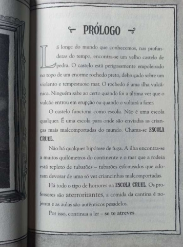 Numa ilha vulcânica, rodeada por águas infestadas de tubarões, encontras a Escola Cruel. As aulas são do pior que há, o refeitório dá vómitos e os professores são horríveis – especialmente a misteriosa professora de ciências, Dra. Dotôra.