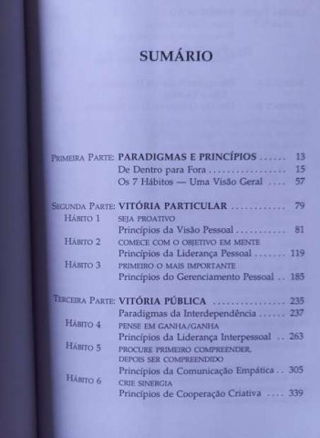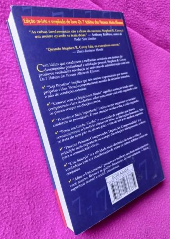 Stephen R. Covey acredita que vencer ou fracassar é resultado de sete hábitos. São eles que distinguem as pessoas felizes, saudáveis e bem-sucedidas das fracassadas ou daquelas que sacrificam o equilíbrio interior e a felicidade para alcançar êxito. Em 'Os 7 hábitos das pessoas altamente eficazes' estão contidos os princípios fundamentais da eficácia humana - sete hábitos básicos e primordiais que representam a interiorização dos princípios corretos, nos quais estão baseados o sucesso e a felicidade duradoura.