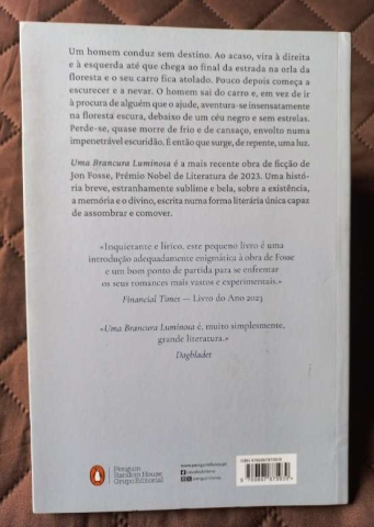 Uma Brancura Luminosa é a mais recente obra de ficção de Jon Fosse, Prémio Nobel de Literatura de 2023. Uma história breve, estranhamente sublime e bela, sobre a existência, a memória e o divino, escrita numa forma literária única capaz de assombrar e comover.