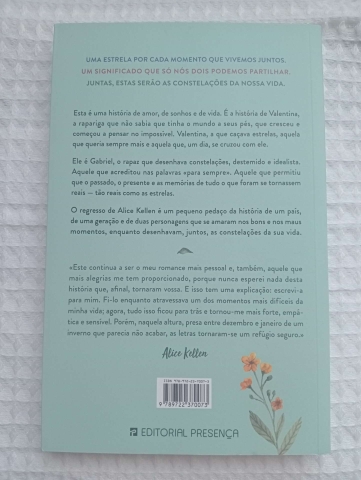 O regresso de Alice Kellen é um pequeno pedaço da história de um país, de uma geração e de duas personagens que se amaram nos bons e nos maus momentos, enquanto desenhavam, juntos, as constelações da sua vida. «Este continua a ser o meu romance mais pessoal e, também, aquele que mais alegrias me tem proporcionado, porque nunca esperei nada desta história que, afinal, tornaram vossa. e isso tem uma explicação: escrevi-a para mim. Fi-lo enquanto atravessava um dos momentos mais difíceis da minha vida; agora, tudo isso ficou para trás e tornou-me mais forte, empática e sensível. Porém, naquela altura, presa entre dezembro e janeiro de um inverno que parecia não acabar, as letras tornaram-se um refúgio seguro.»