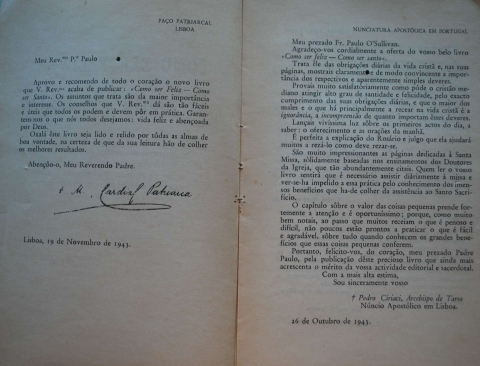 É um livro admirável, aprovado e recomendado por sua eminência o Sr. Cardeal Patriarca. o Sr. Núncio Apostólico e pelos Exmos e e Rev. Prelados